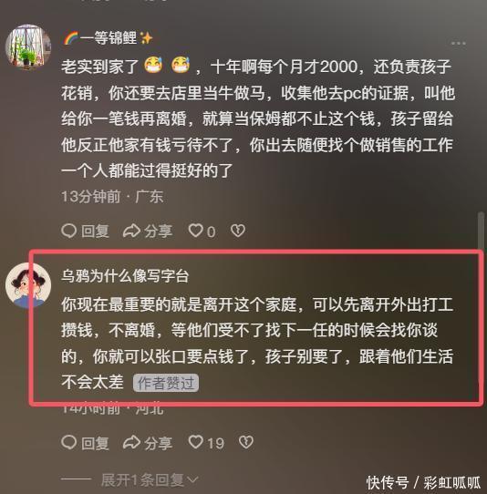 先把孩子照顾好,再找份能兼顾家庭的工作,慢慢攒钱、学技能,等自己有了底气,不管是继续过还是离婚,都有选择权。